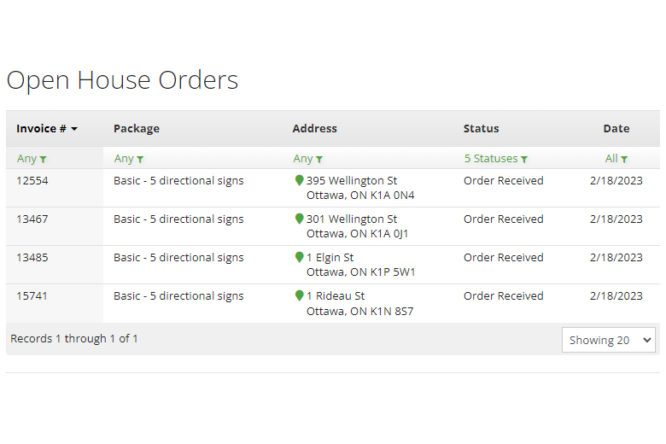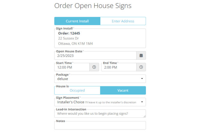 Log in from any device and book open house sign installation services in Ottawa. Anytime.